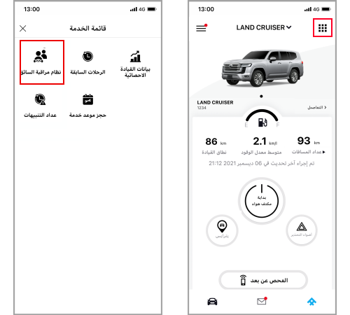 انتقل إلى قائمة الخدمات لبدء نظام مراقبة السائق